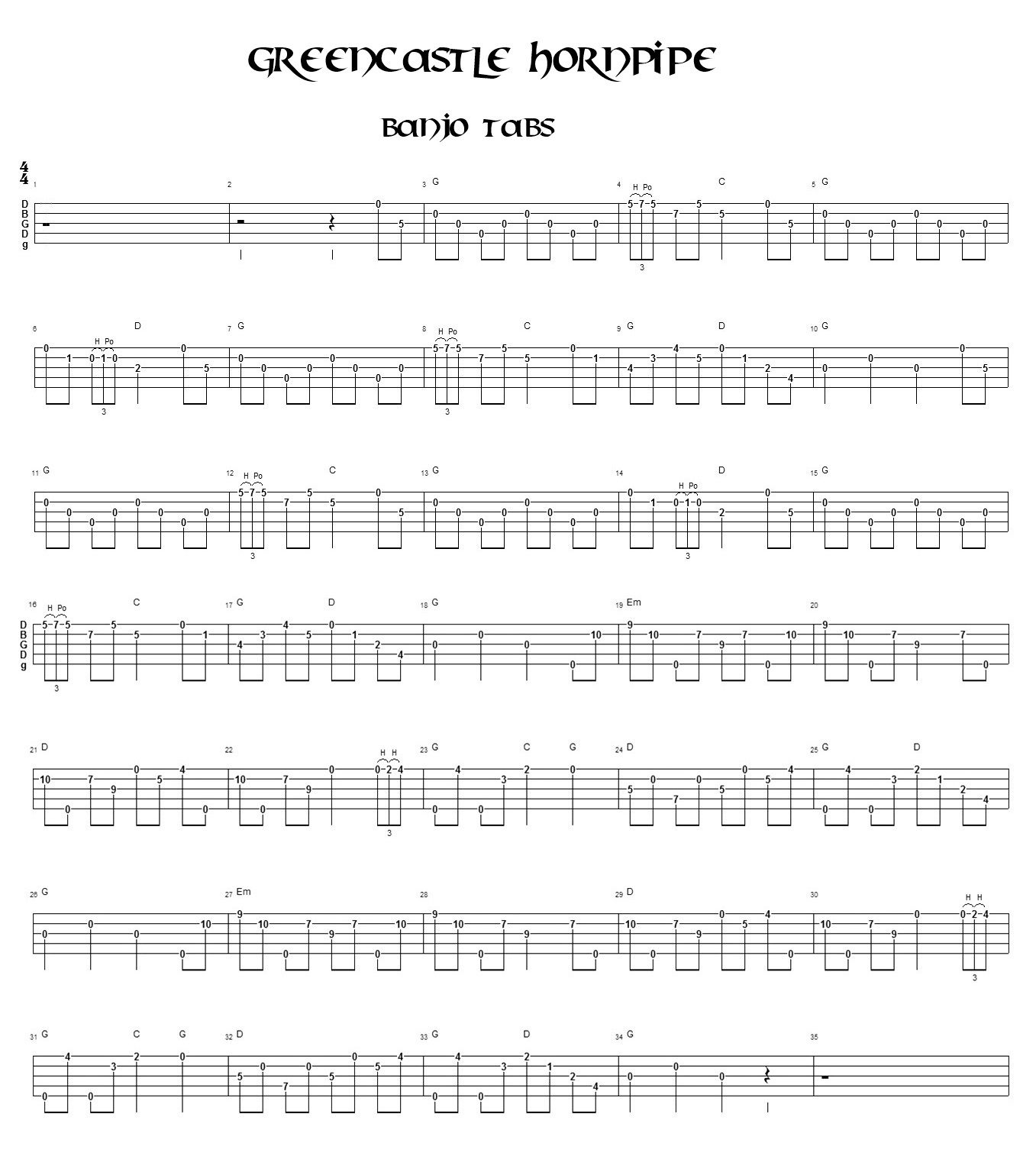 Tabs für Hornpipe und Carolan Tune - Gitarre in Stimmung E A D G B e, Banjo - G D G B D